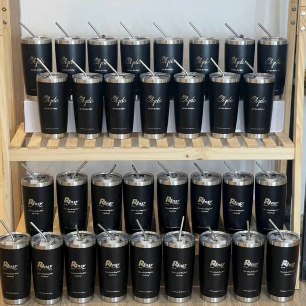 11. Cốc sứ hoặc bình giữ nhiệt in logo và tên nhân viên.