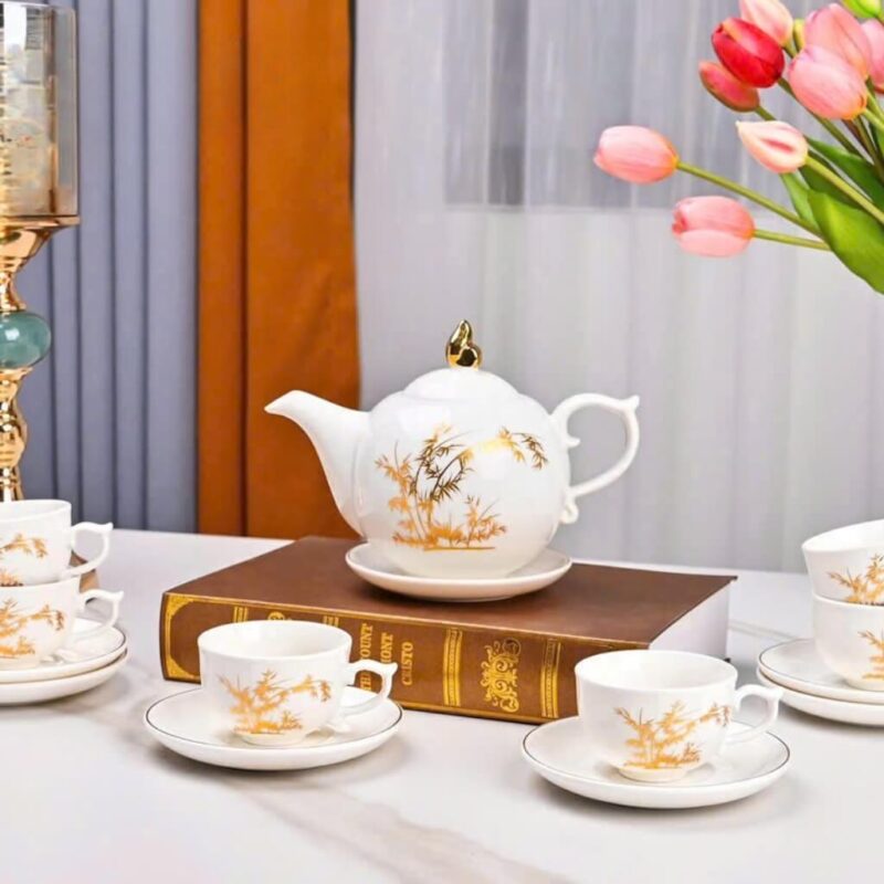 - Bao gồm: Ly sứ Bát Tràng cao cấp in logo, lót ly bằng gỗ hoặc vải, đi kèm một hộp trà hoặc cà phê thượng hạng.