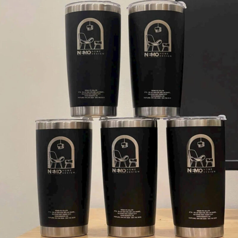 • Bình giữ nhiệt hoặc ly sứ khắc laser logo.